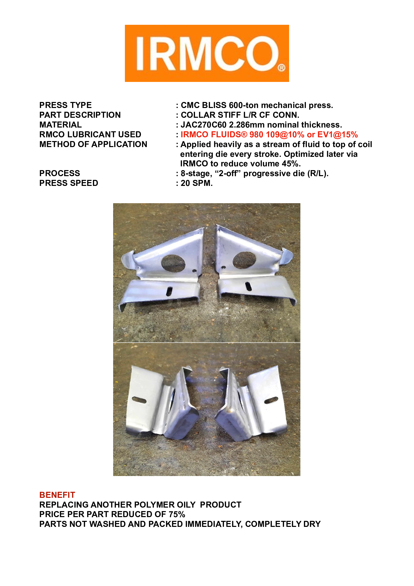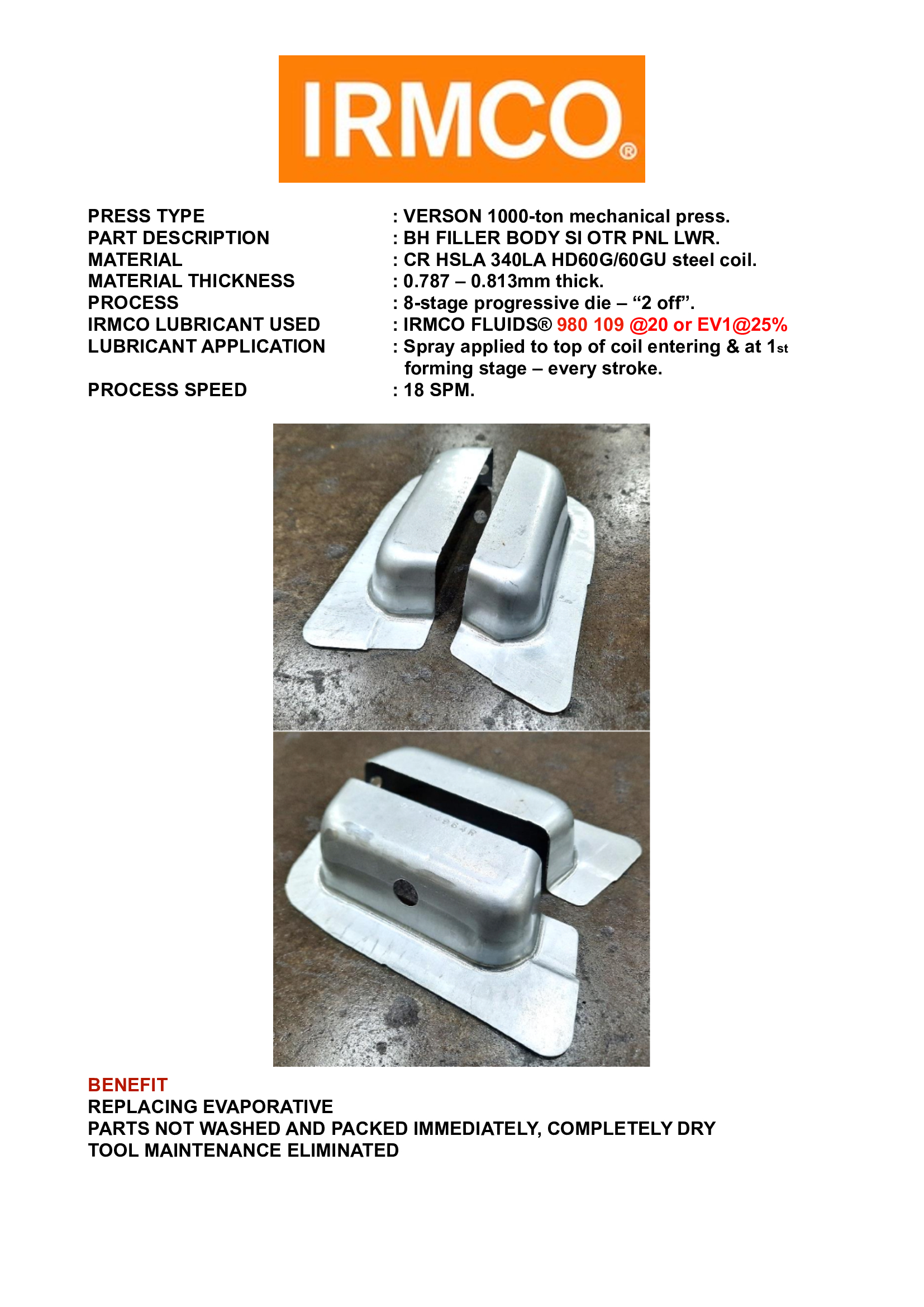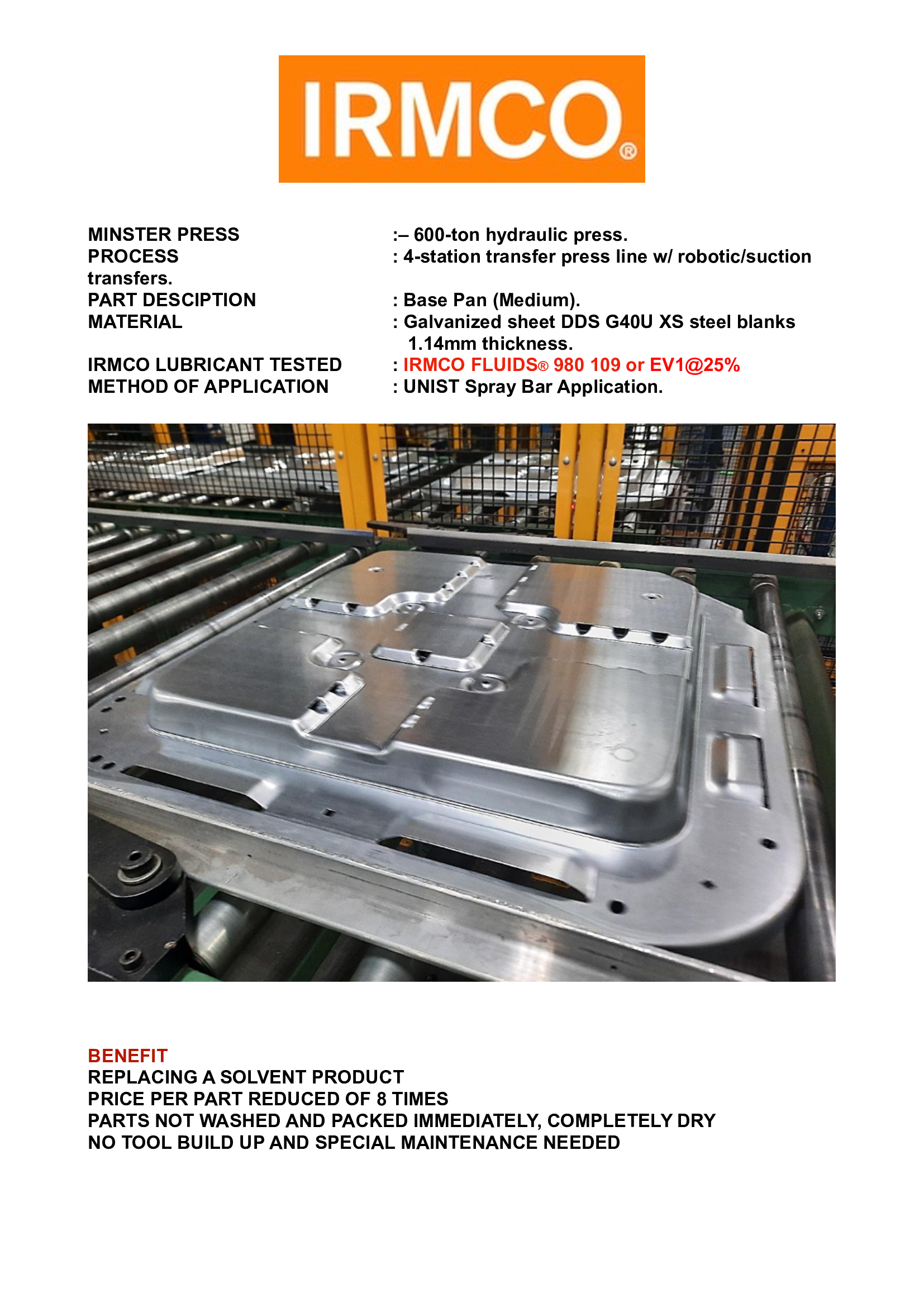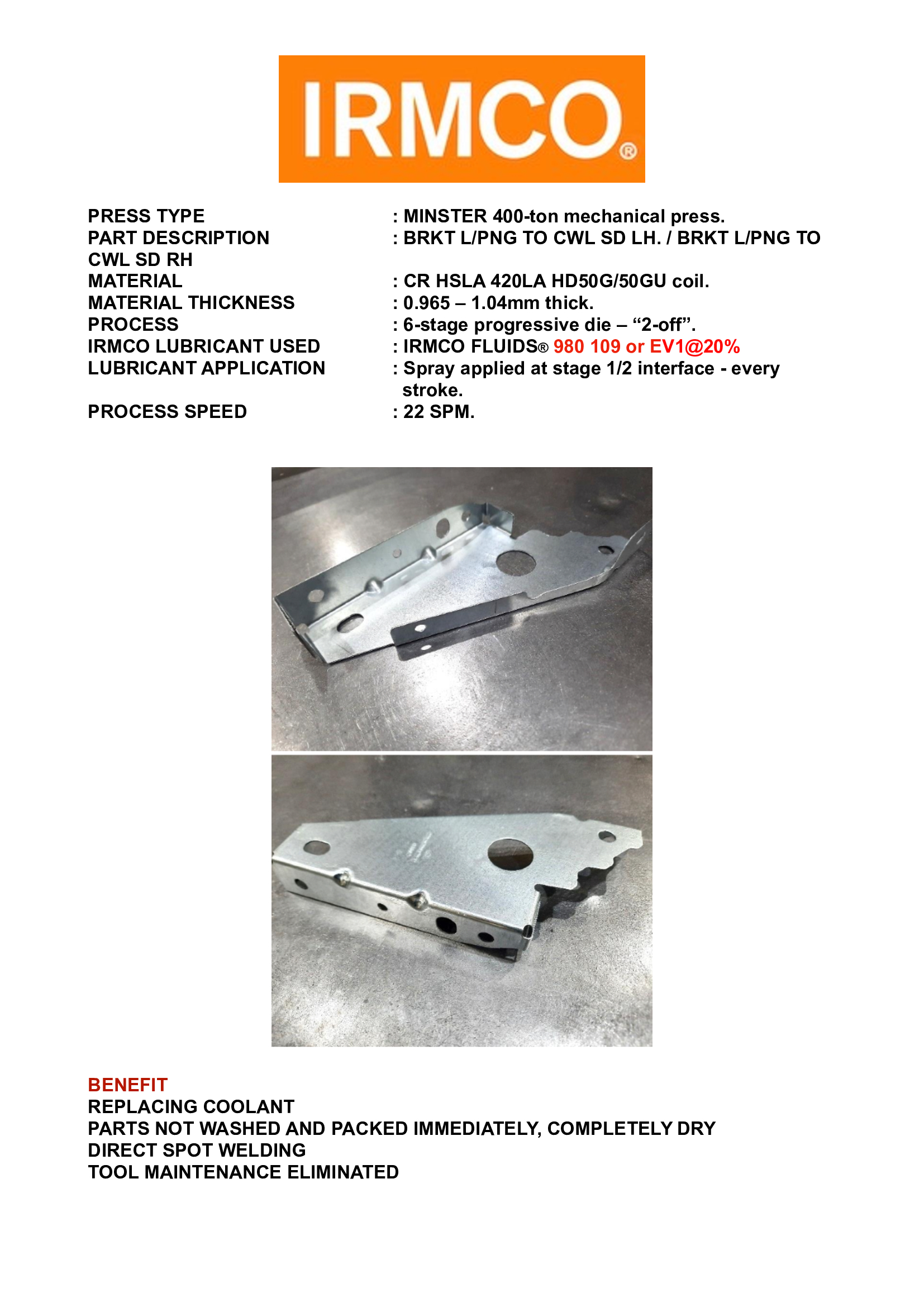 Lubricants in the Manufacturing of Gusset B L, FR Side Frame