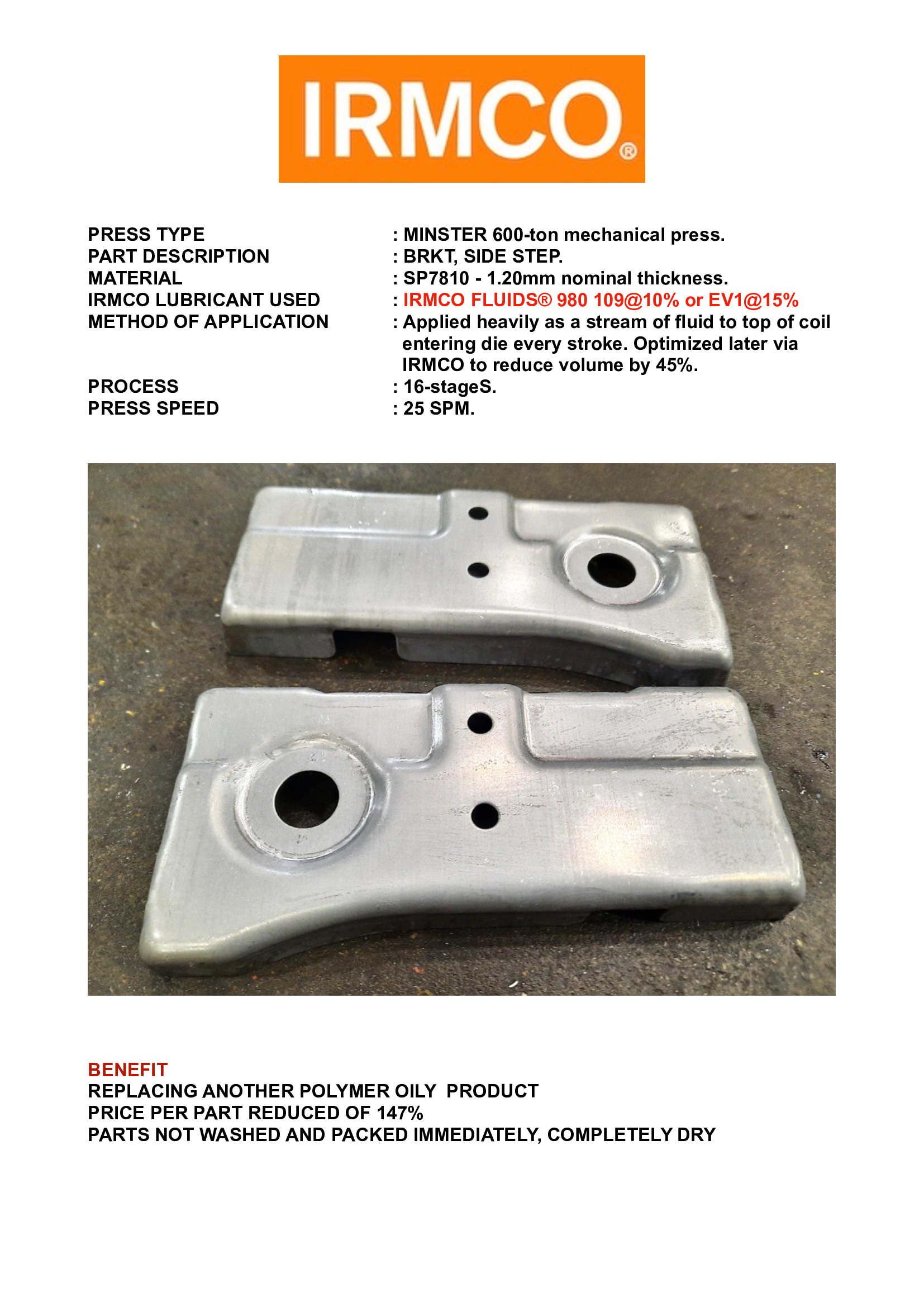 Lubricants in the Manufacturing of BRKT – SIDE STEP