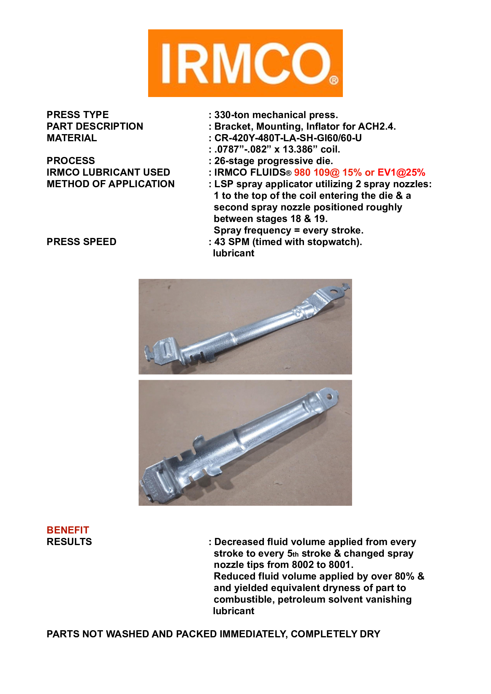 Lubricants in the Manufacturing of BRACKET MOUNTING INFLATOR for ACH2.4