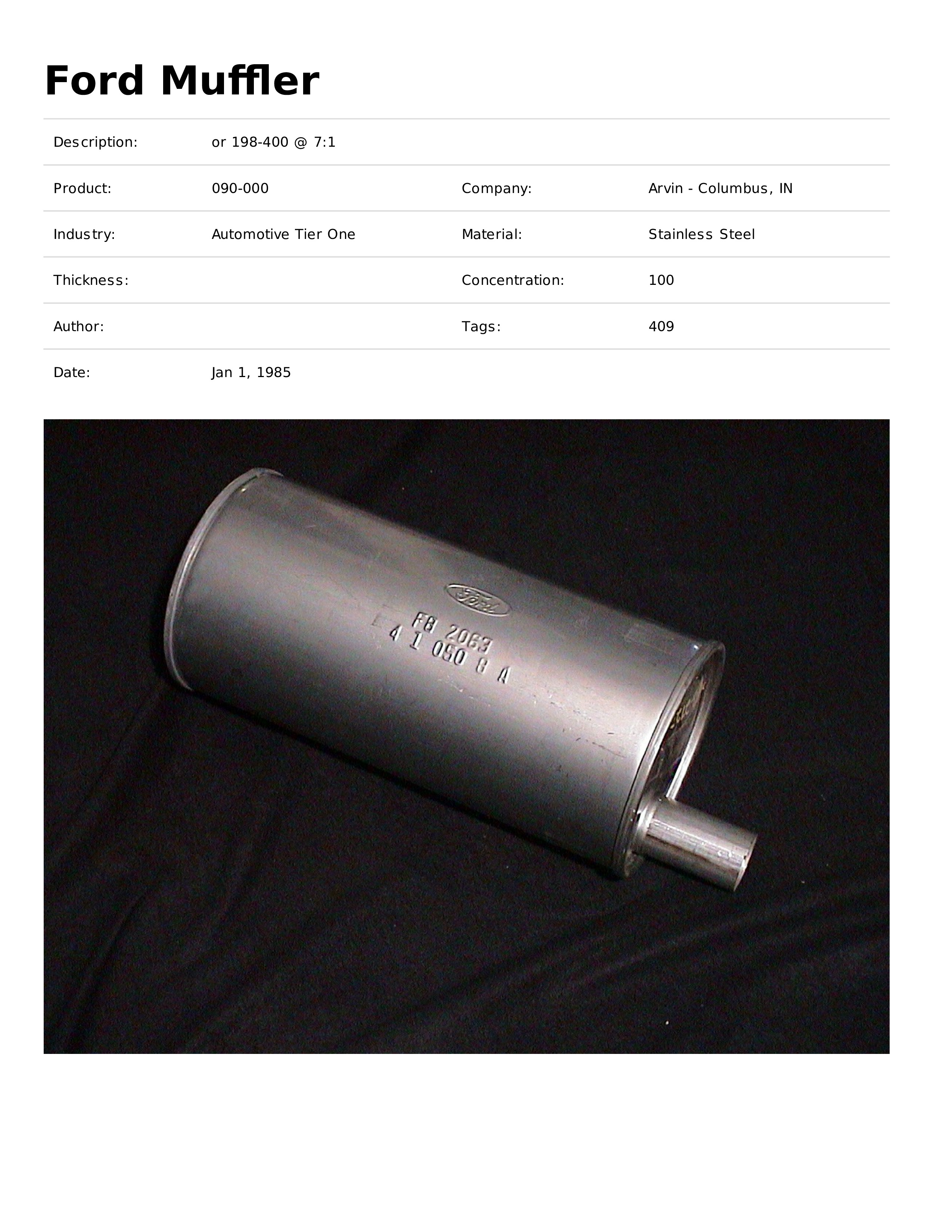 Lubricants in the Manufacturing of Ford Muffler Components